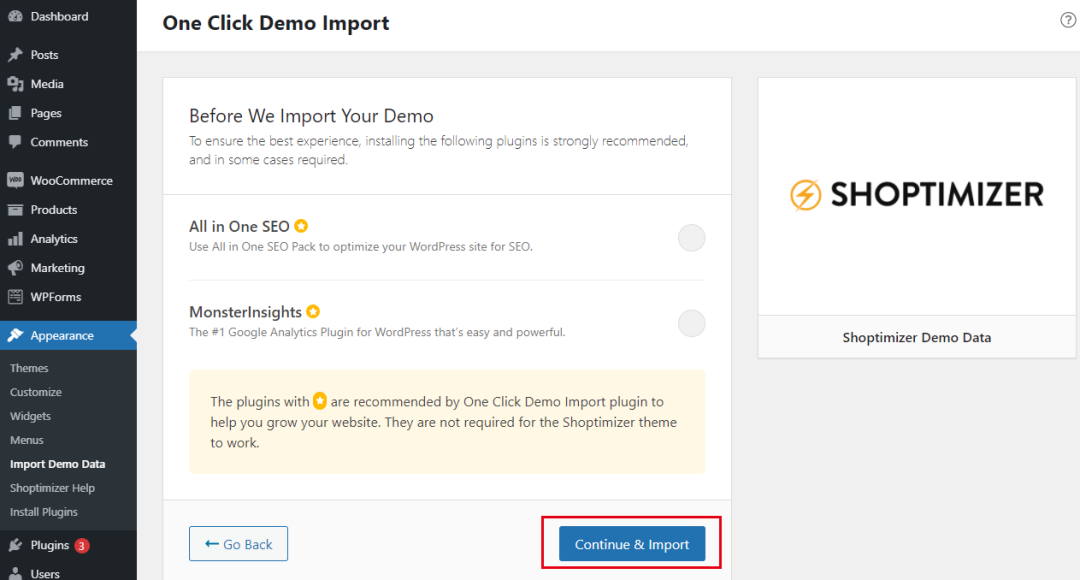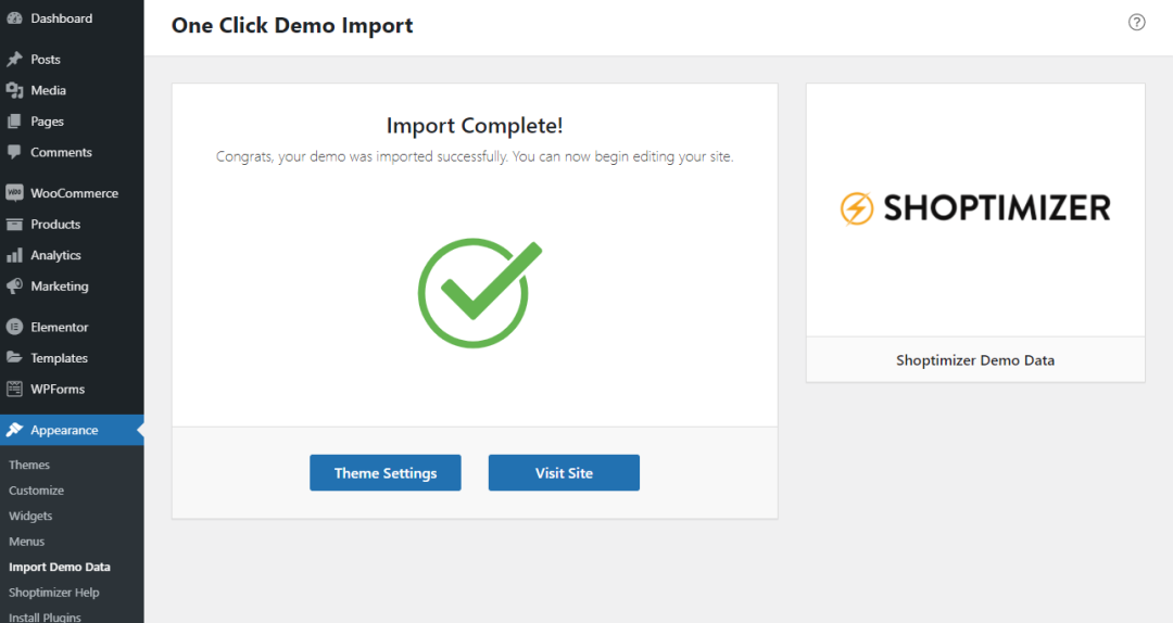 插件安装好之后,左边菜单栏出现Import Demo Data,点击右侧Import Demo Data。