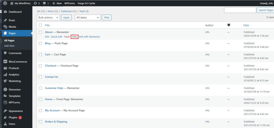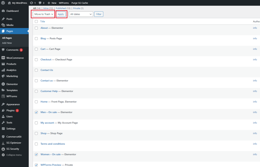 - 菜单栏Pages -> All Pages,删除不需要的页面。