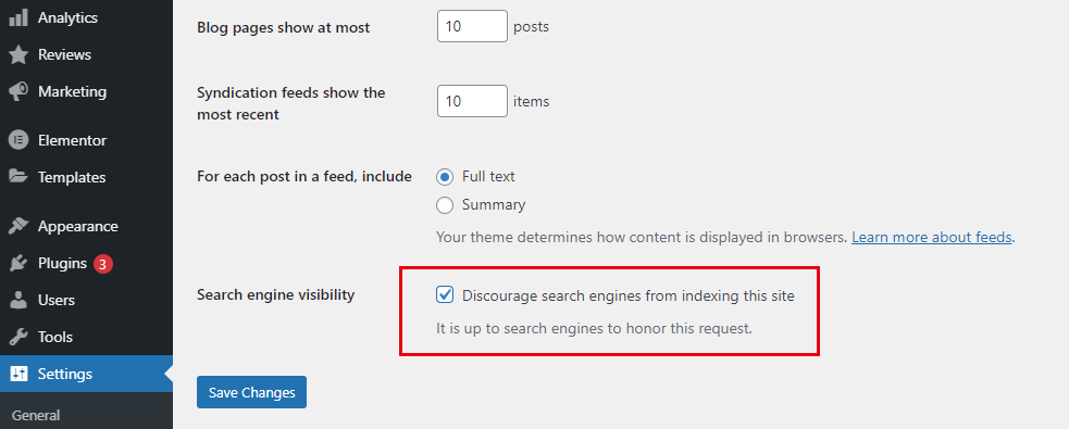 在网站没有成型之前,我们可能会对网站有各种改动。所以在网站做好之前请先不要让搜索引擎收录你的页面。Settings -> Reading,在Search Engine Visibility这个地方打勾。设置如下图: