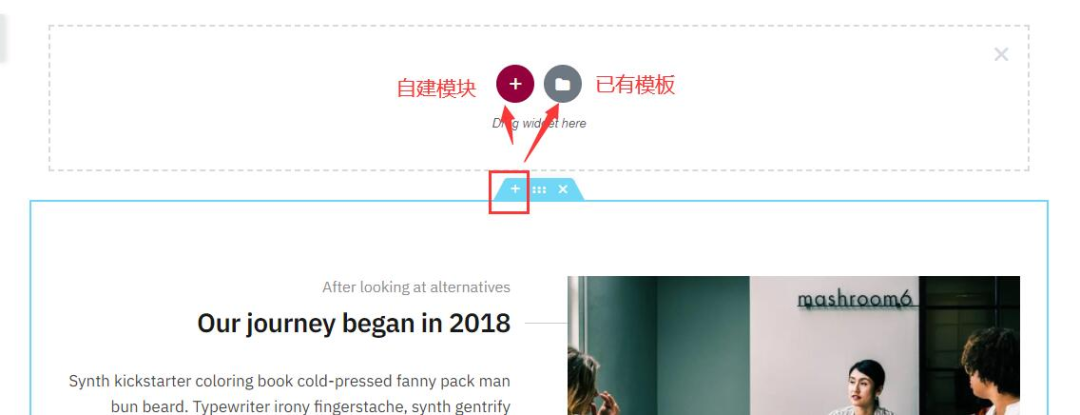 想要添加其他模块?点击+号,可以选择自建模块或者已有模块模板。