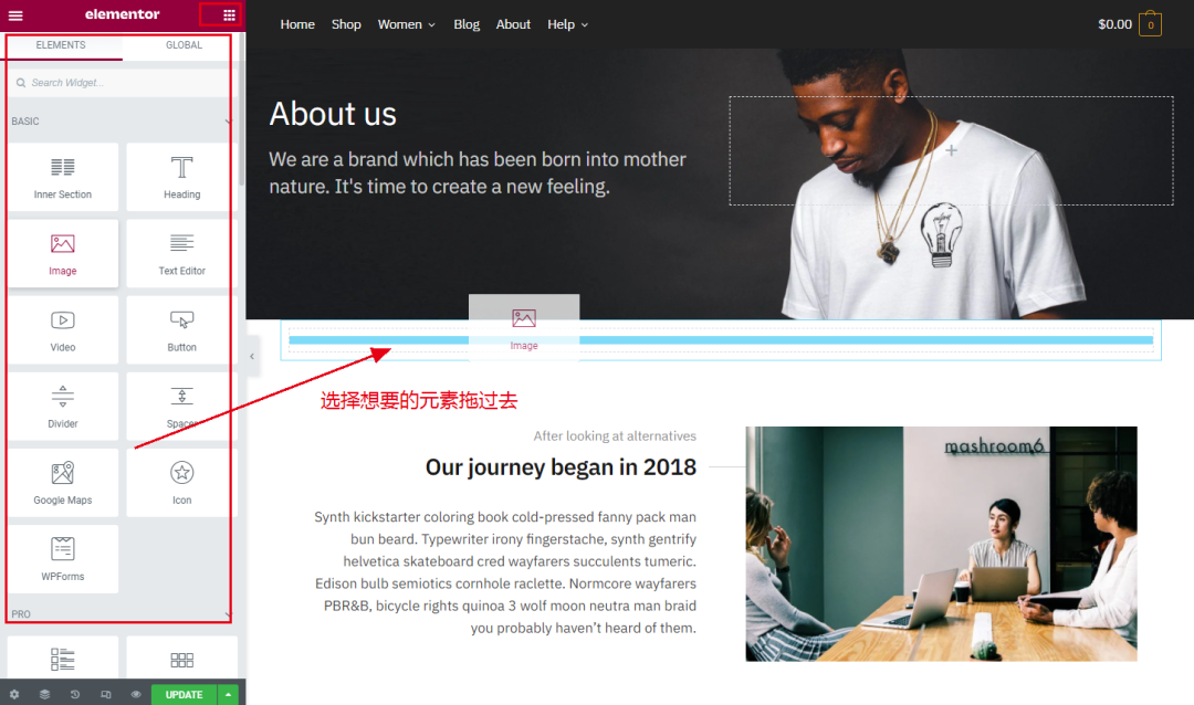 其他页面要添加和删减一些页面模块,所以需要用到Elementor进行修改。这是一个非常好用的模板修改神器,很多主题都兼容和支持这个工具。