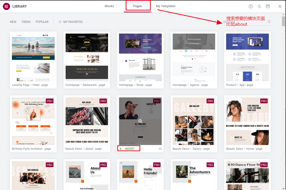 选择已有模板,Blocks是指单个模块,Pages是指整个页面模板。你也可以选择整个页面模板,删除不想用的模块,保留只想要的单独某个模块。